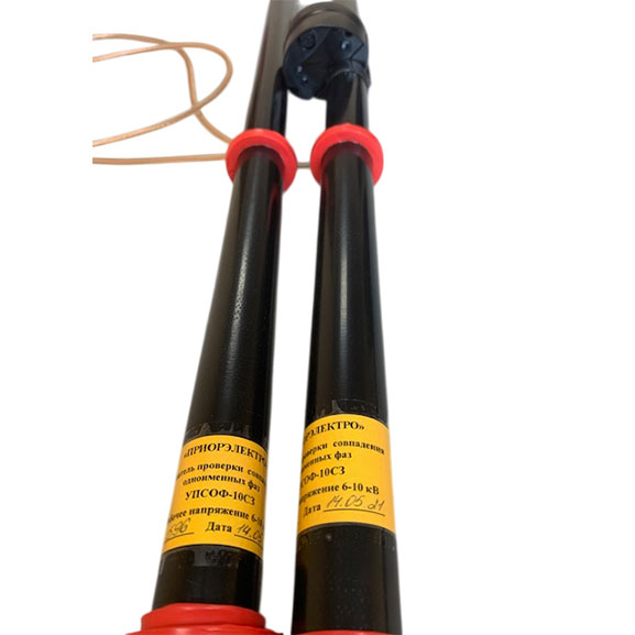 Указатель проверки совпадения одноименных фаз УПСОФ-10 СЗ предназначен для проверки совпадения фаз кабельных и воздушных линий 6 10 кВ, для использования в качестве указателя напряжения и для проверки предохранителей в электроустановках 6 – 10 кВ.